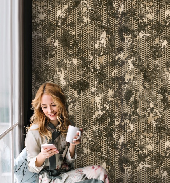 نمونه اجرا شده کاغذدیواری پتینه طرح هندسی کد 8038