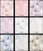 پالت رنگی این گروه کاملاً احساسی و نرم است: صورتی و رز روشن، بنفش لیلا، آبی-طوسی، کرم گرم و خاکی ملایم. روی همهی این رنگها رگههای مرمری خیلی ملایم کشیده شده تا سطح دیوار عمیقتر و گرانبهاتر دیده شود. بعضی طرحها گلها را واضحتر و رنگیتر نشان میدهند، بعضیها همان گل را در تُن خاکستری/طوسی محو کردهاند تا بتوانید برای دیوارهای کناری هم از همین سری استفاده کنید. پس اگر بخواهید فقط یک دیوار را خیلی چشمگیر کنید و بقیه را آرامتر بزنید، همین گروه بهتنهایی نیازتان را برطرف میکند.